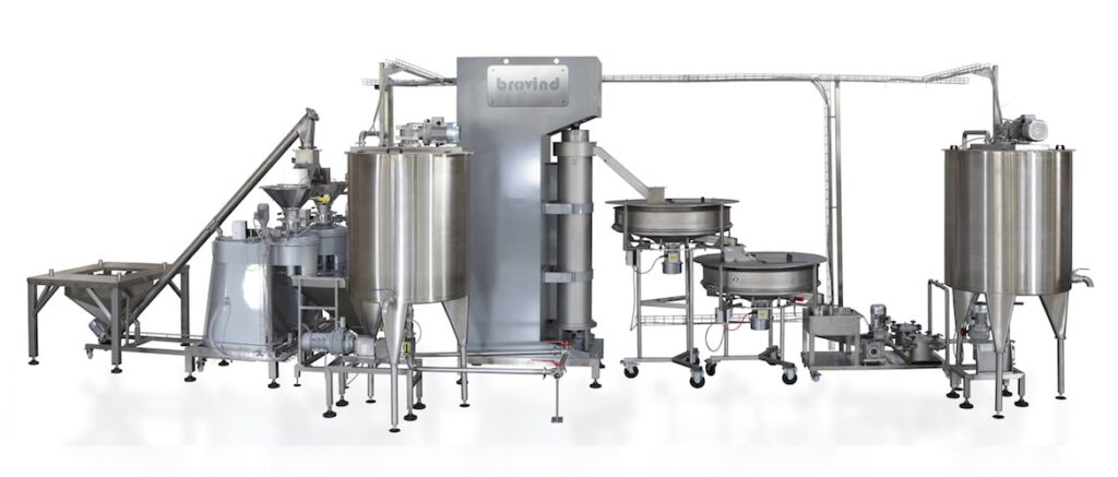 Brovind propose des lignes continues pour produire des pâtes et des crèmes à base de fruits secs. Le broyage et le raffinage à basse température visent à préserver la qualité organoleptique du produit.